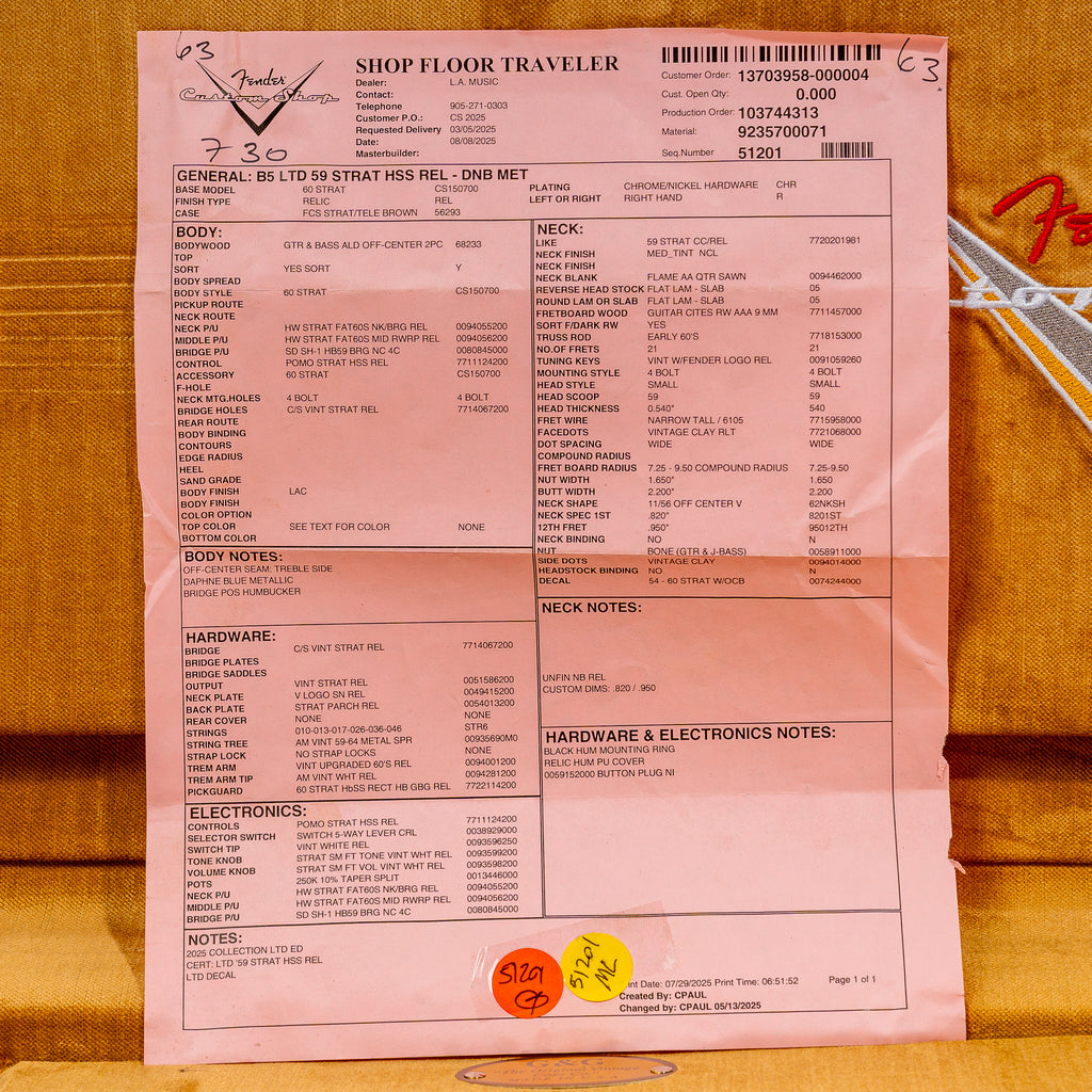 | Case: | Fender Custom Shop Strat/Tele Brown Hardshell (Included) |
