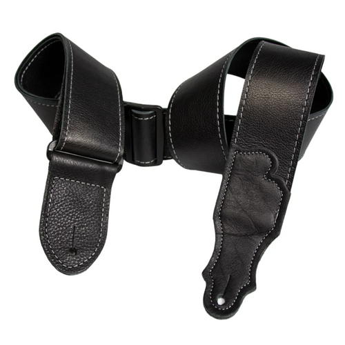 Franklin Strap 2" Deluxe 60 Leather Guitar/Bass Strap, Black w/ Silver Stitching