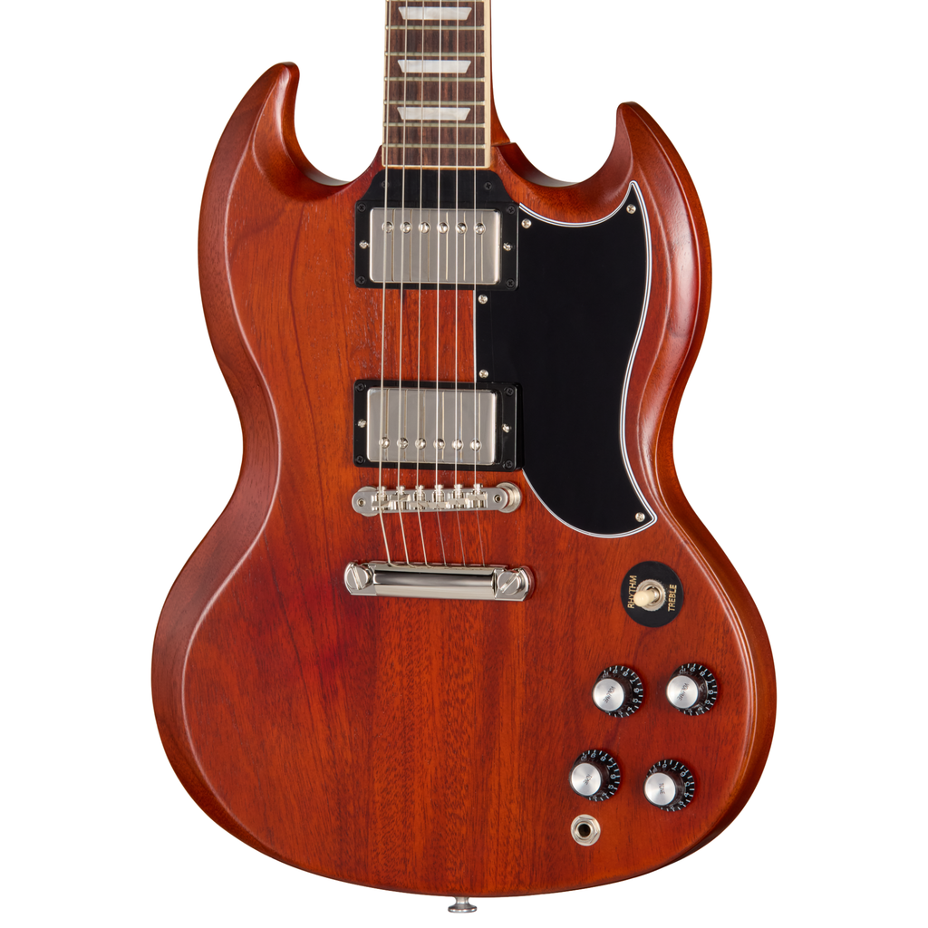 - Double-cutaway mahogany solidbody