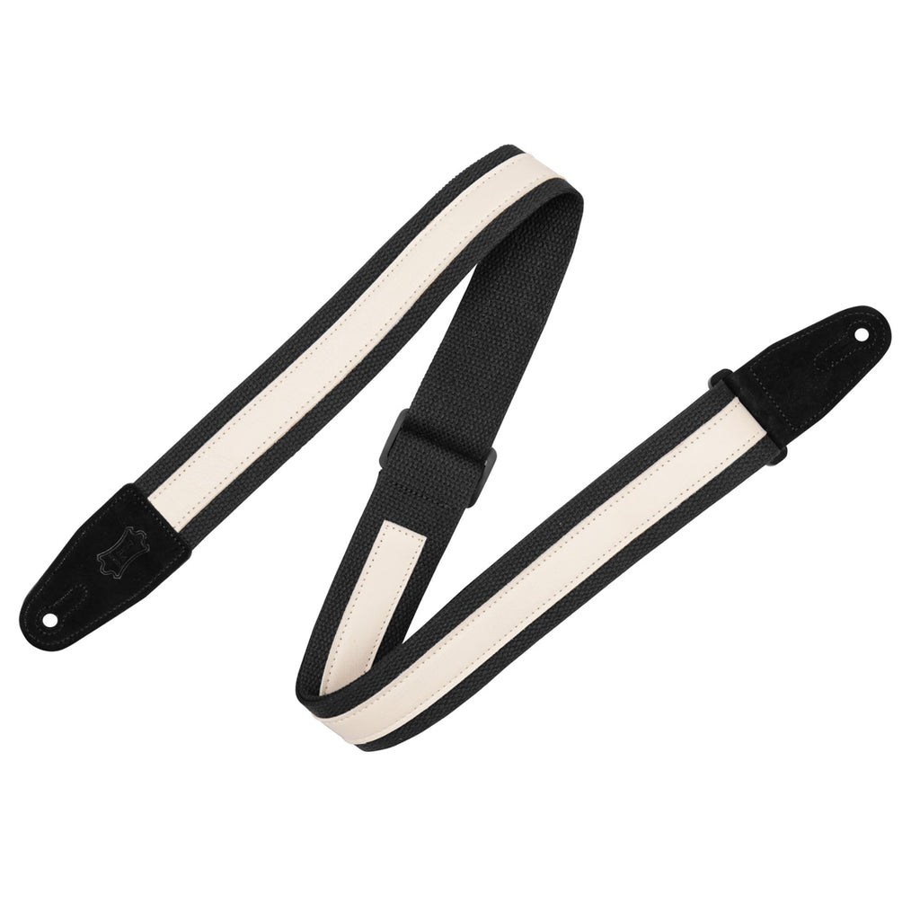 Levys 2” Cotton Combo Guitar Strap, Black Cotton w/ Cream Leather Strip